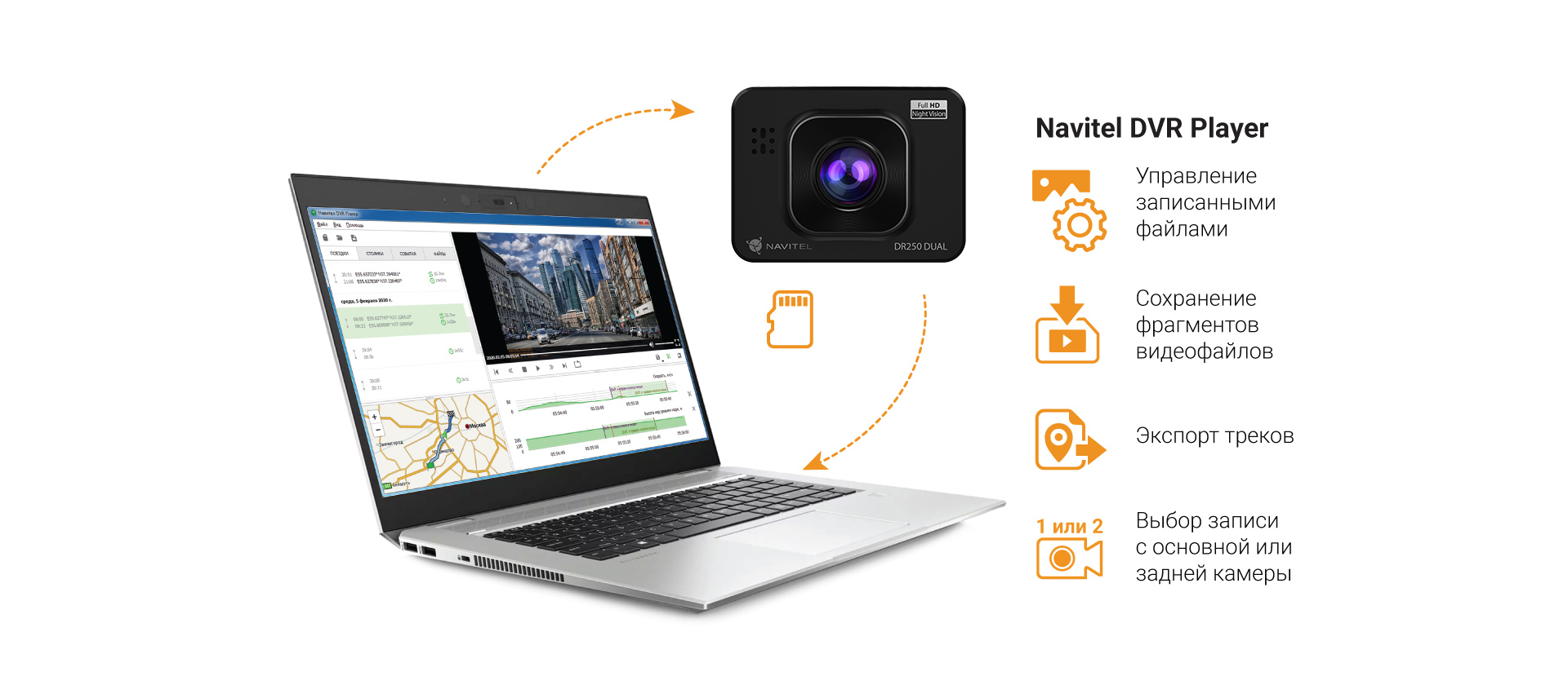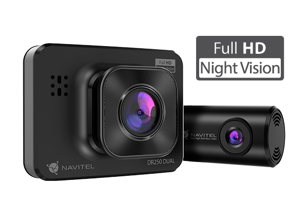 NAVITEL DR250 DUAL – это современный компактный видеорегистратор, оснащённый дополнительной камерой заднего вида.