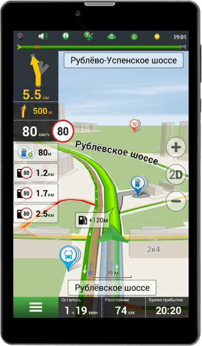 Карты содержат актуальные данные об инфраструктуре городов и населенных пунктов. Расширенная база объектов POI (заправки, банкоматы, рестораны и т.д.) позволяет легко находить нужные места в незнакомом городе. В дорожную сеть включены все улицы и дороги с учетом направленности движения и транспортных развязок, содержится информация о расположении стационарных дорожных радаров и камер контроля скорости*.