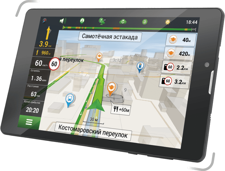 На планшет NAVITEL T500 3G предустановлены карты 47 стран (Европа, Россия, Казахстан, Беларусь). Карты содержат актуальные сведения о транспортных развязках, городской инфраструктуре и камерах видеофиксации*.